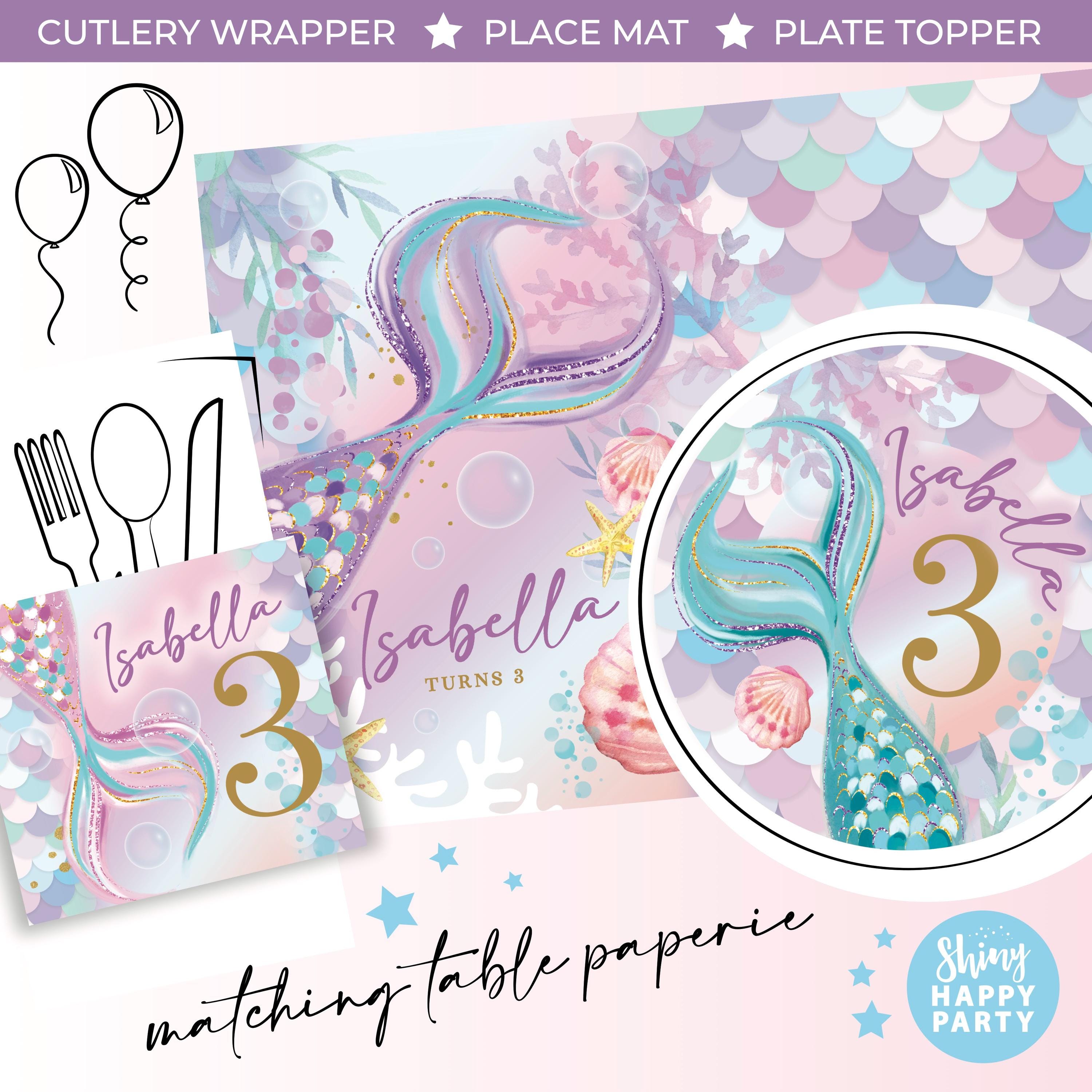 MERMAID PASTEL SEA Personalised Party Box - Add matching paperie to co-ordinate your party decor -Table Settings Gift Bags Birthday Stickers