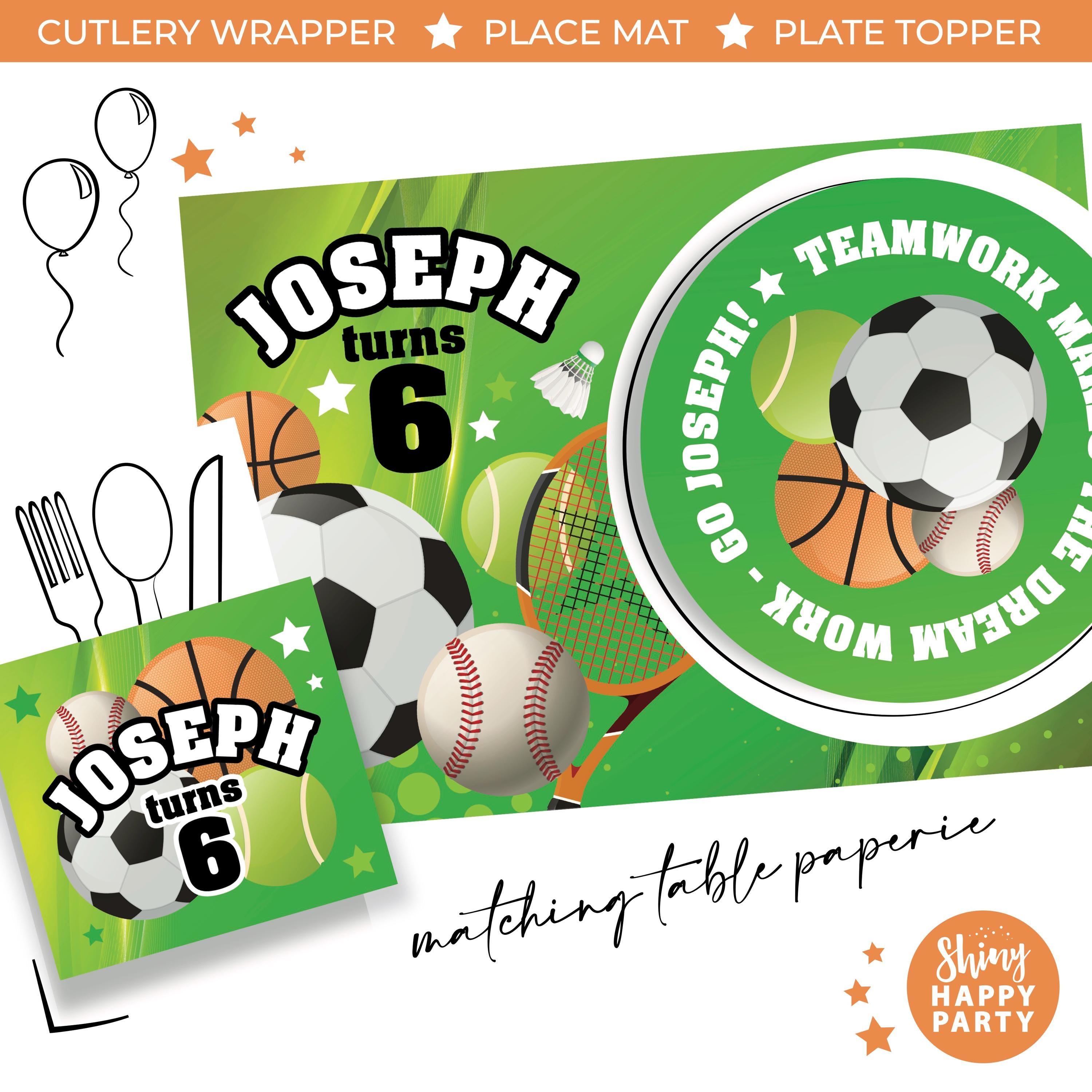 Game on! Celebrate your little champion with a personalised sports party box with fun, coordinated table decor. Whether it's a birthday bash, team celebration or a sporty party, this set makes it effortless to style your table like a pro.