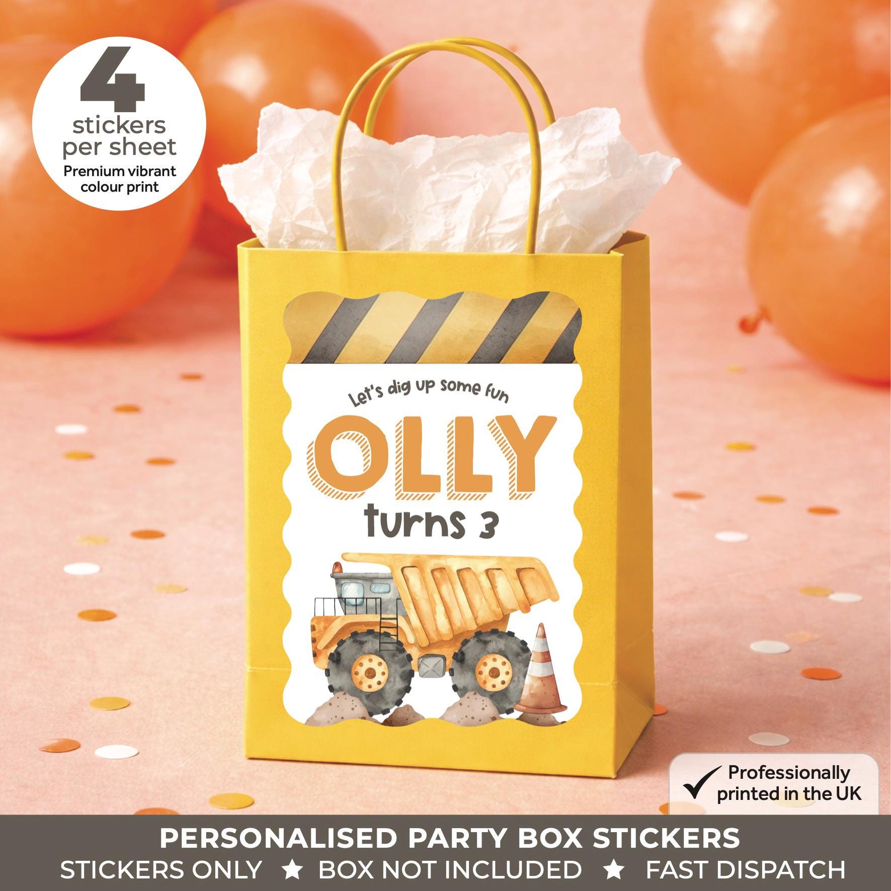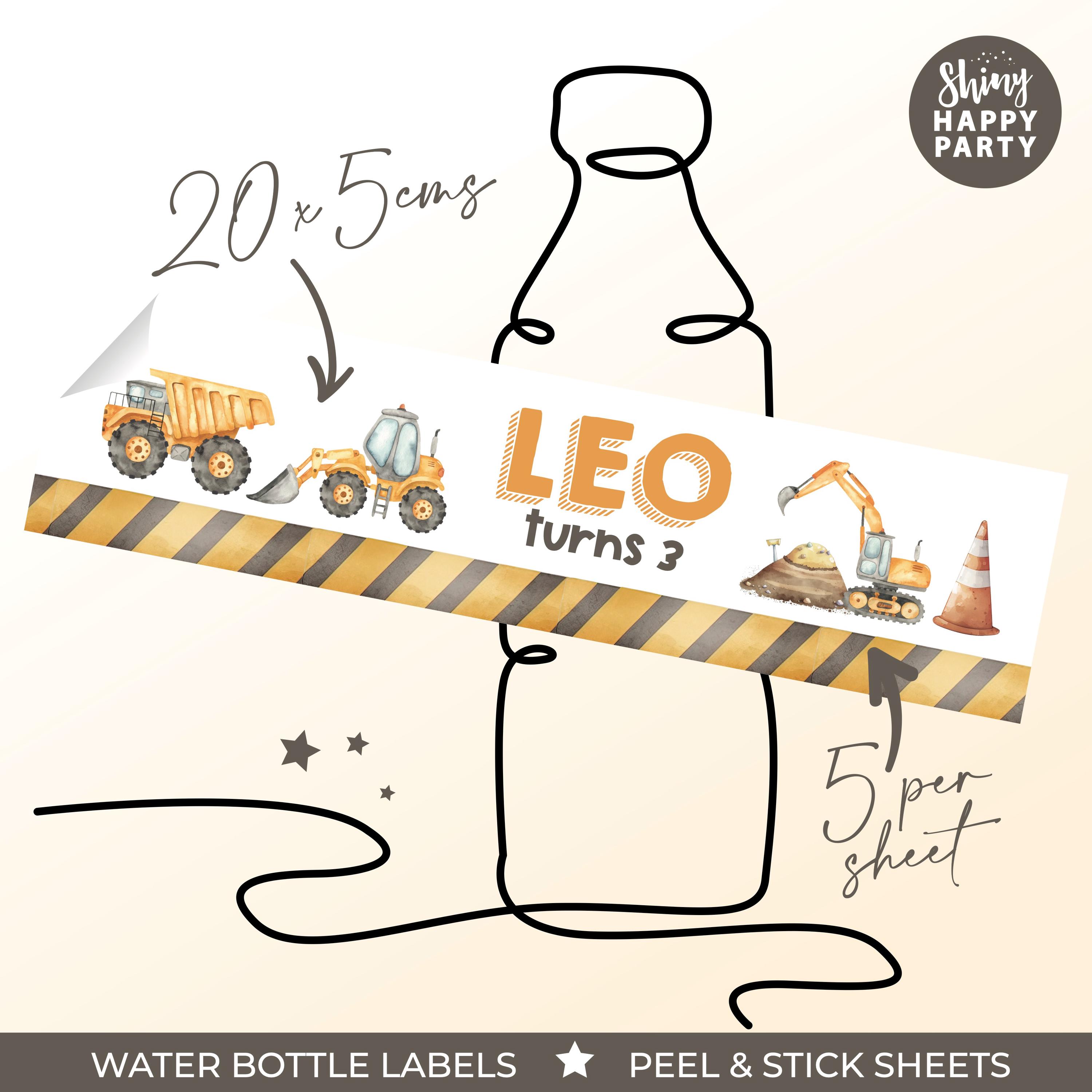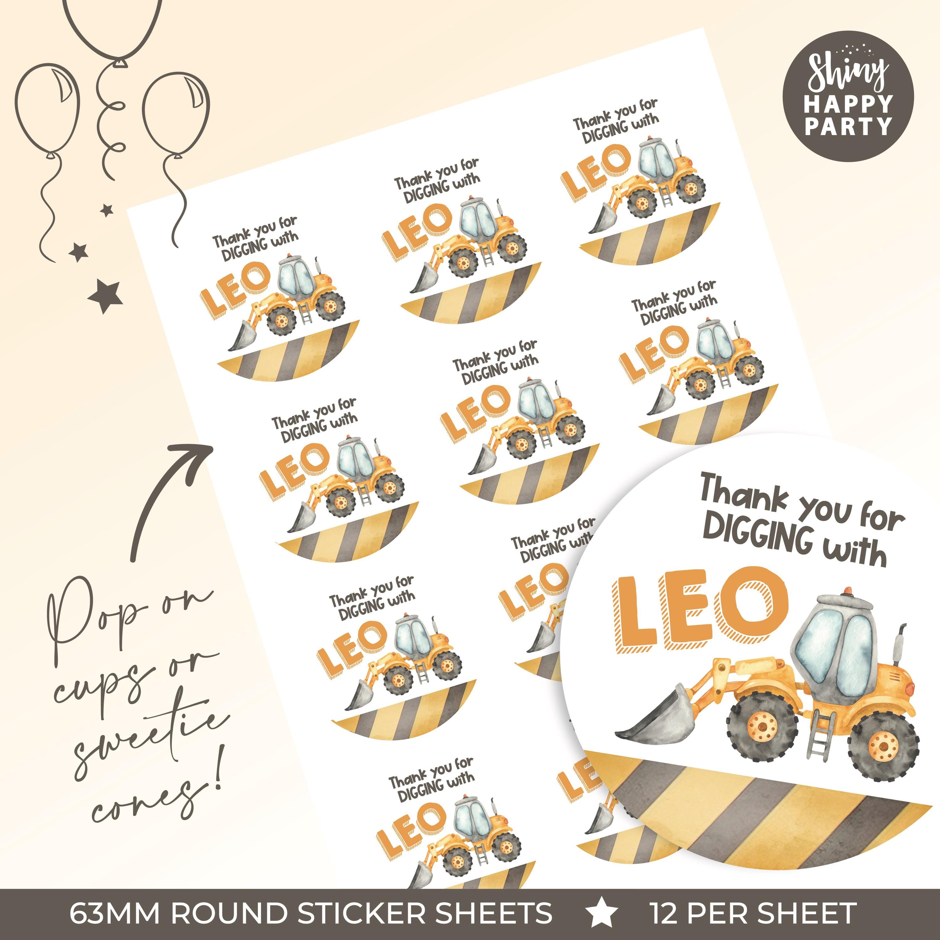 Personalised CONSTRUCTION Birthday Party Stickers - Watercolour Digger Labels