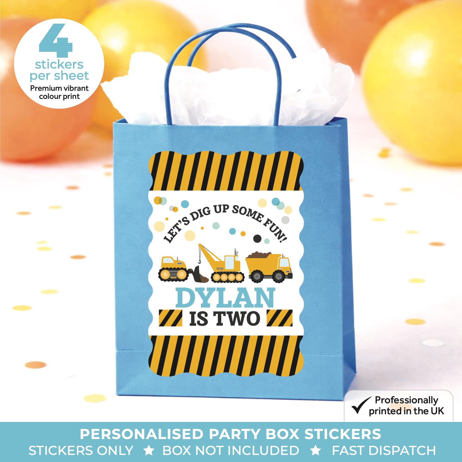 Personalised DIGGER Birthday Party Stickers - Construction Labels