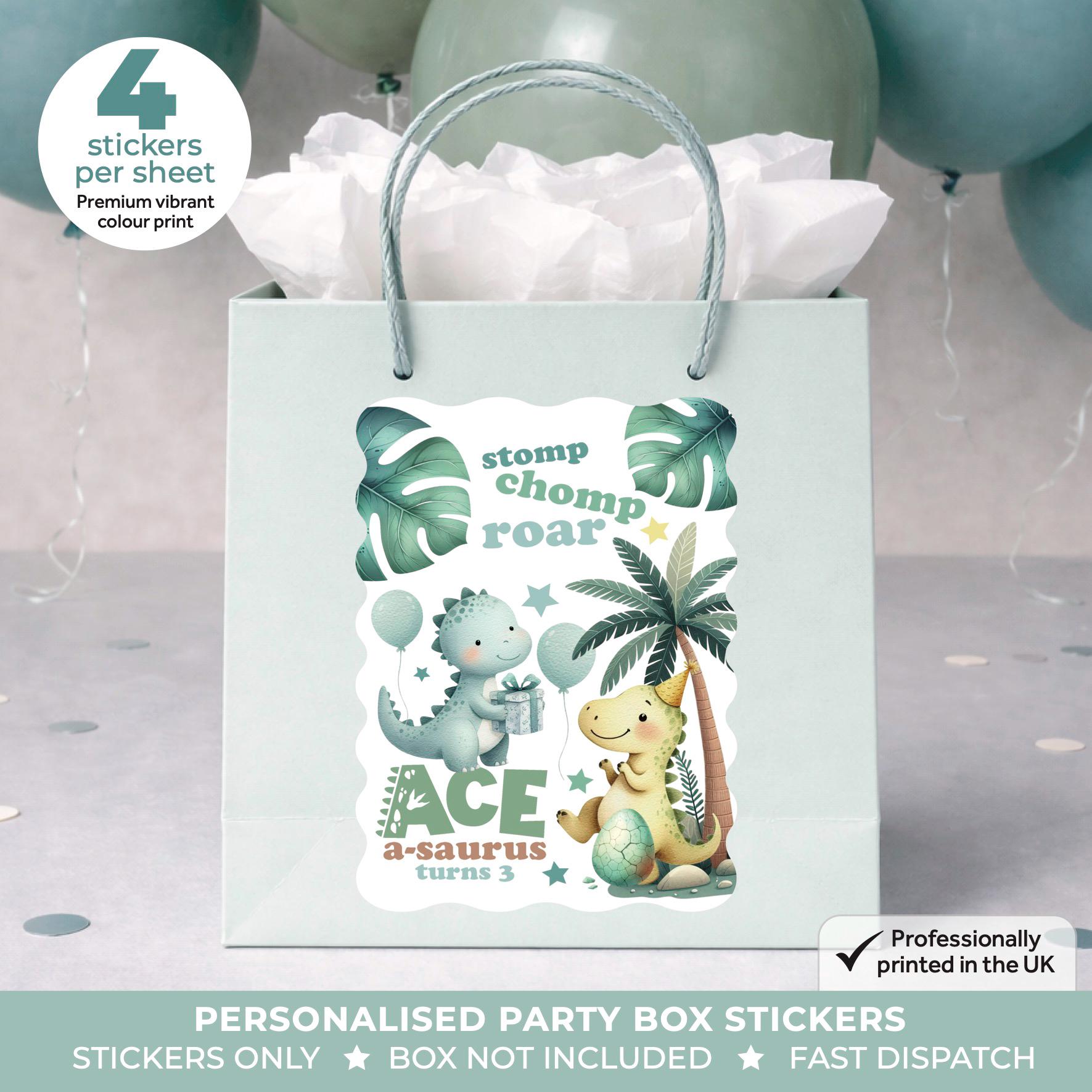 • Stickers are designed to fit most standard party boxes and bags