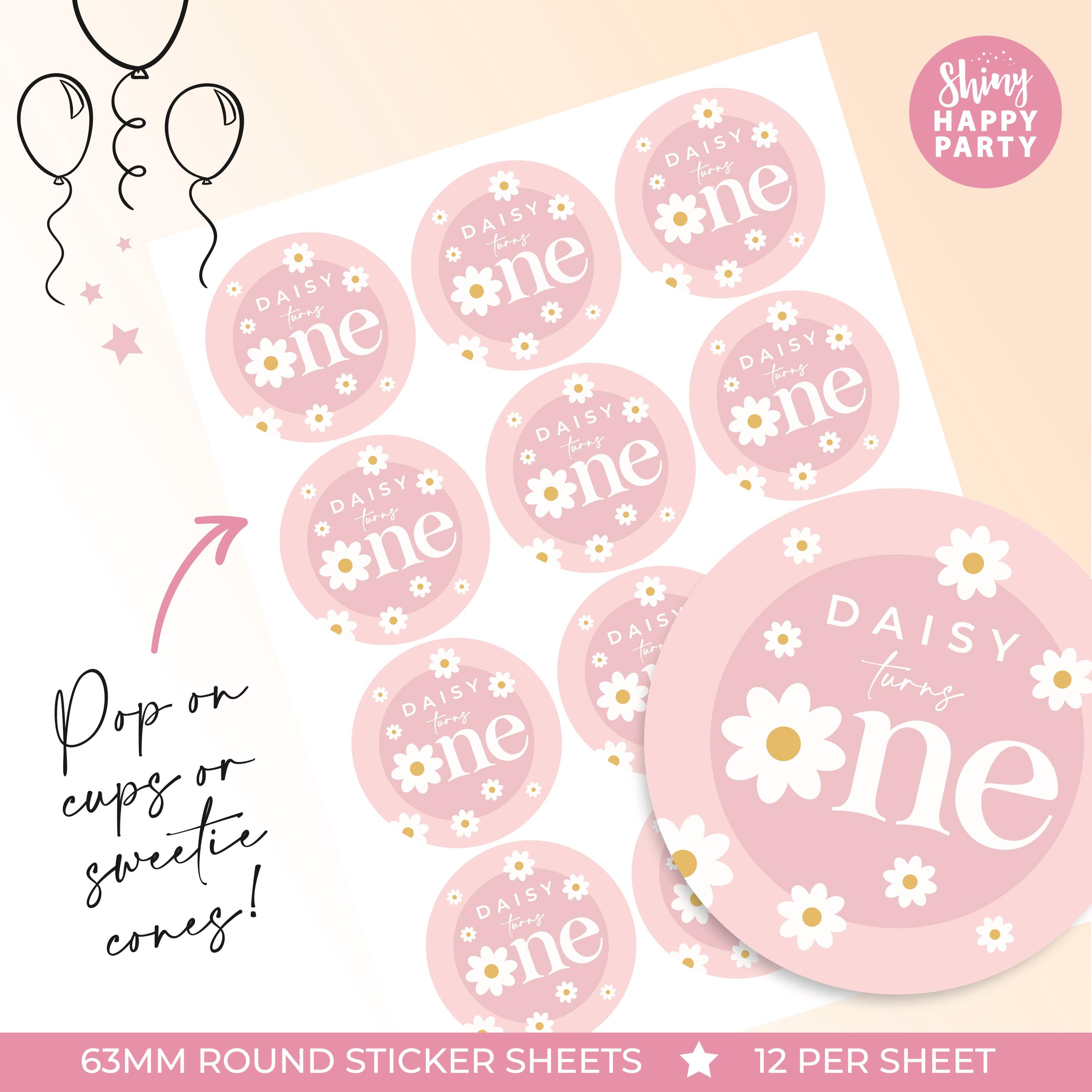 Personalised DAISY Birthday Party Stickers - Pink Floral Labels