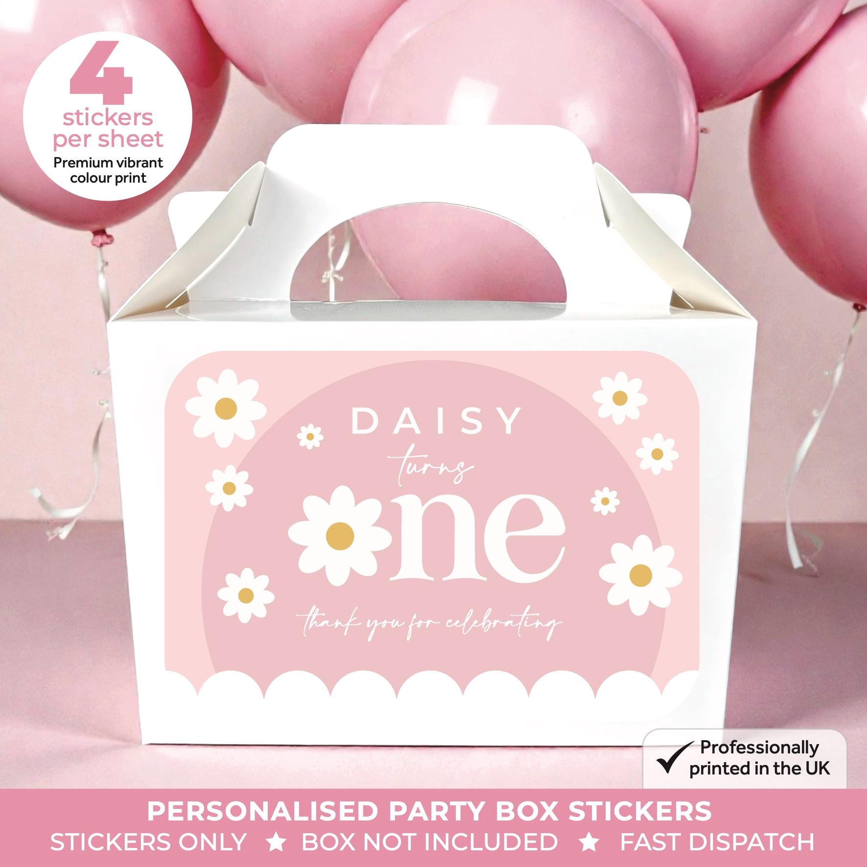 • Stickers are designed to fit most standard party boxes and bags