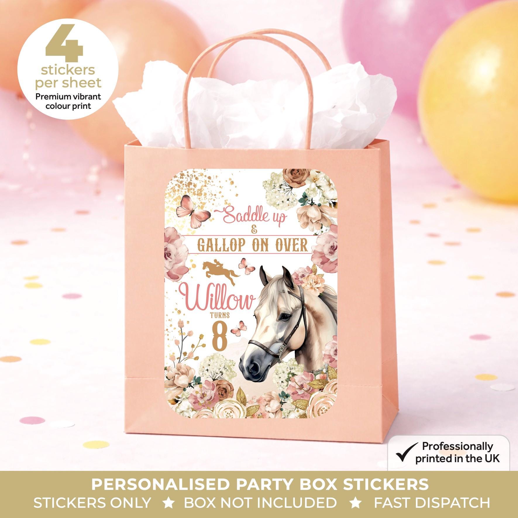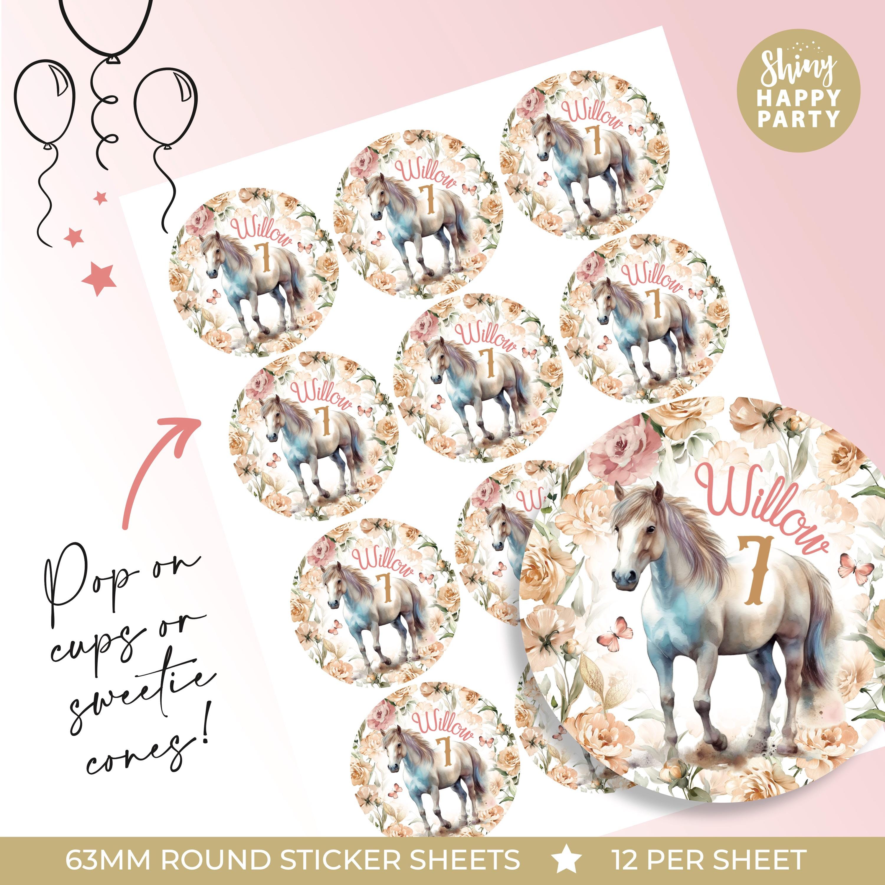Personalised Western Horse Birthday Party Stickers - Floral Pony Labels