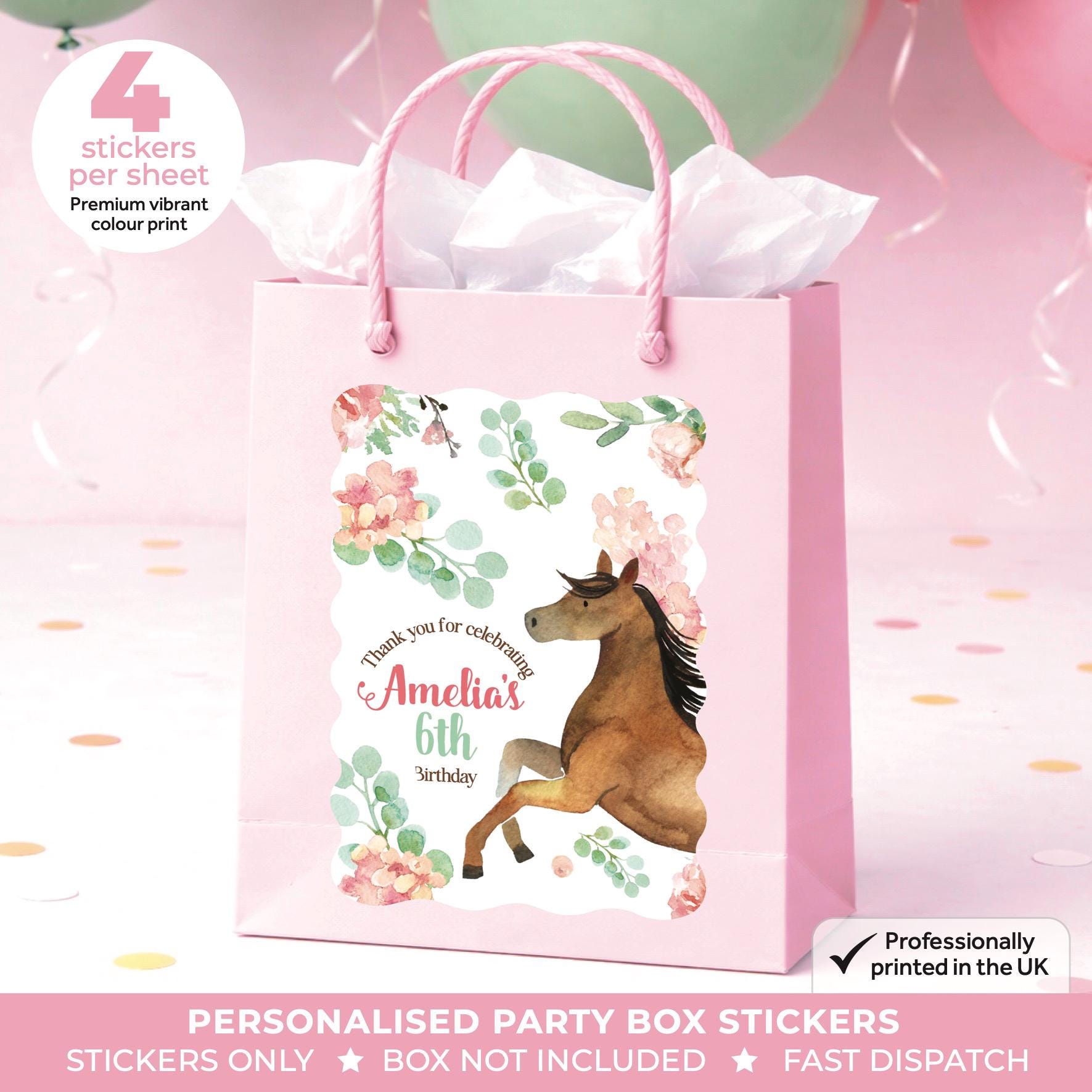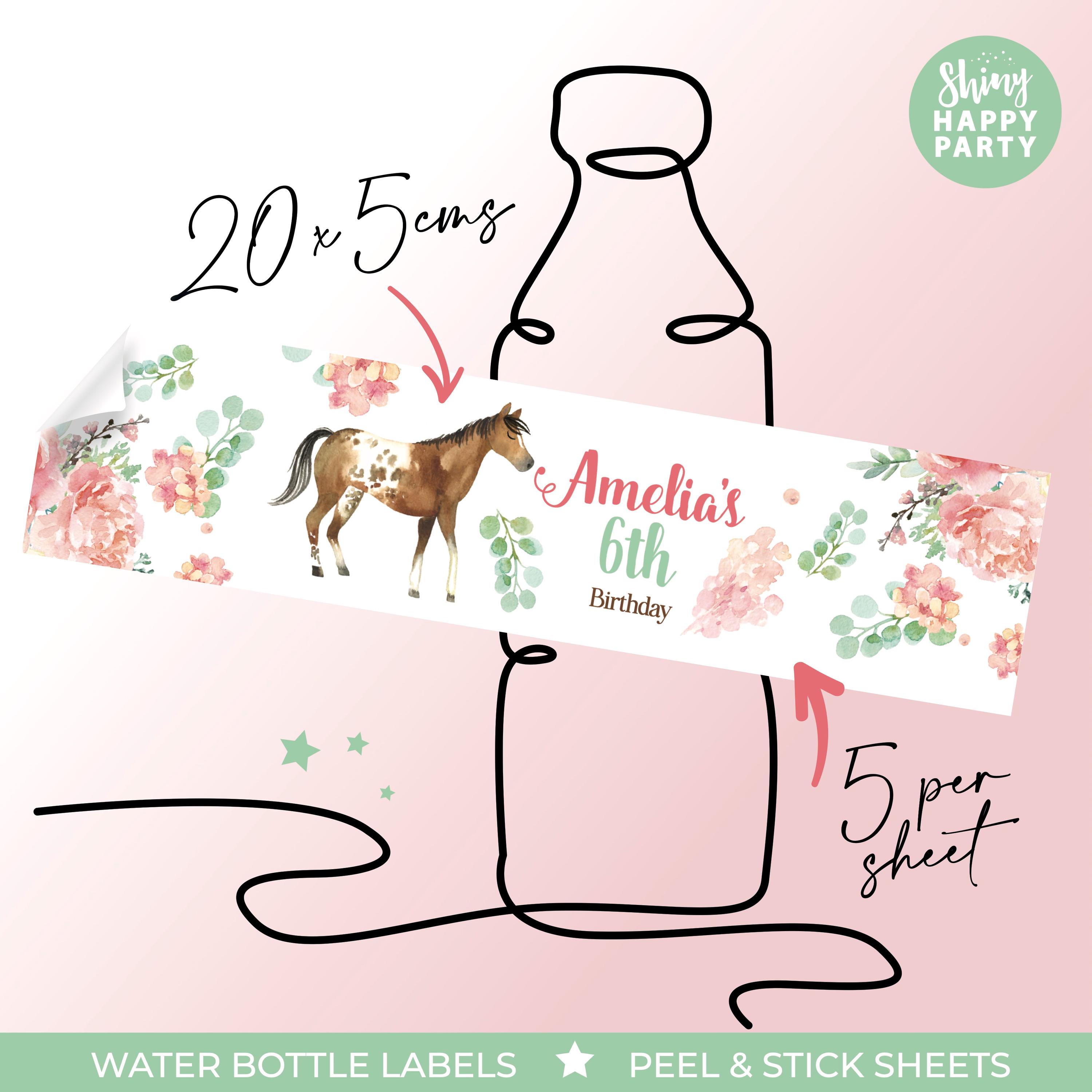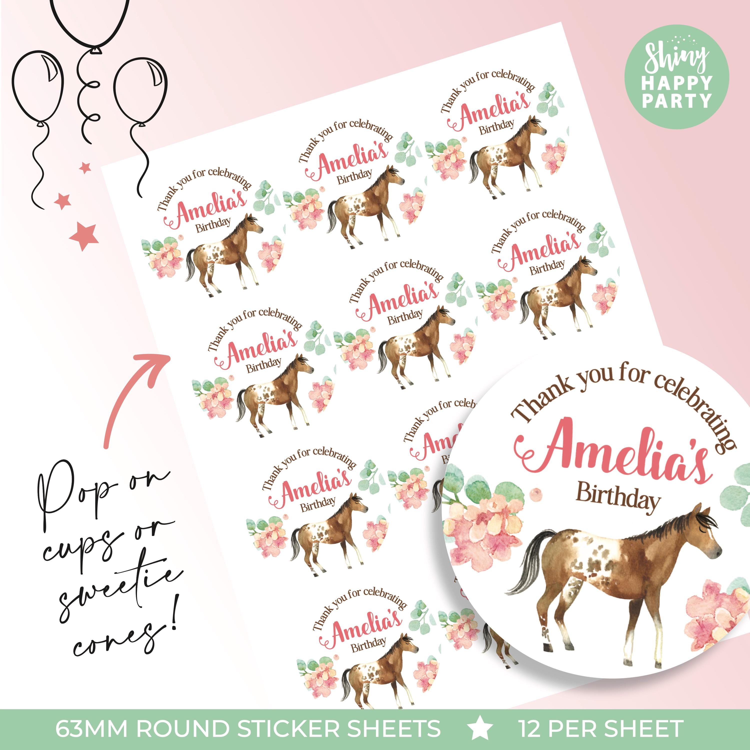 Personalised Watercolour HORSE Birthday Stickers - Floral Pony Labels