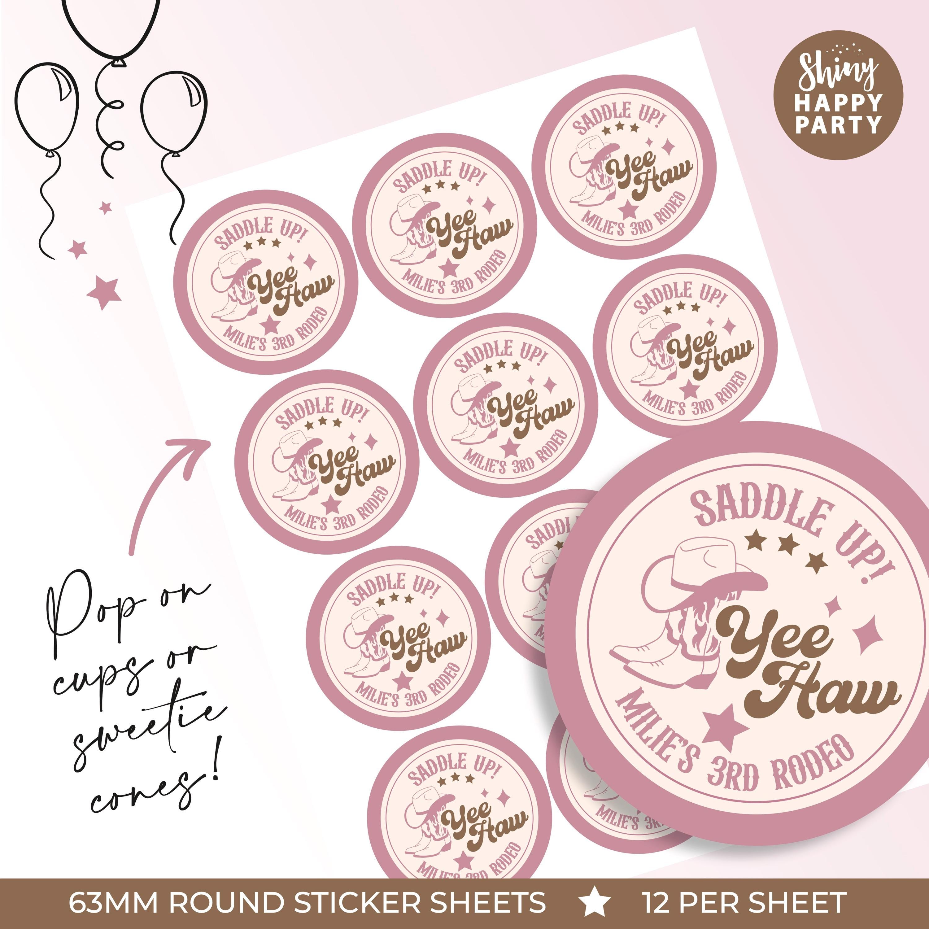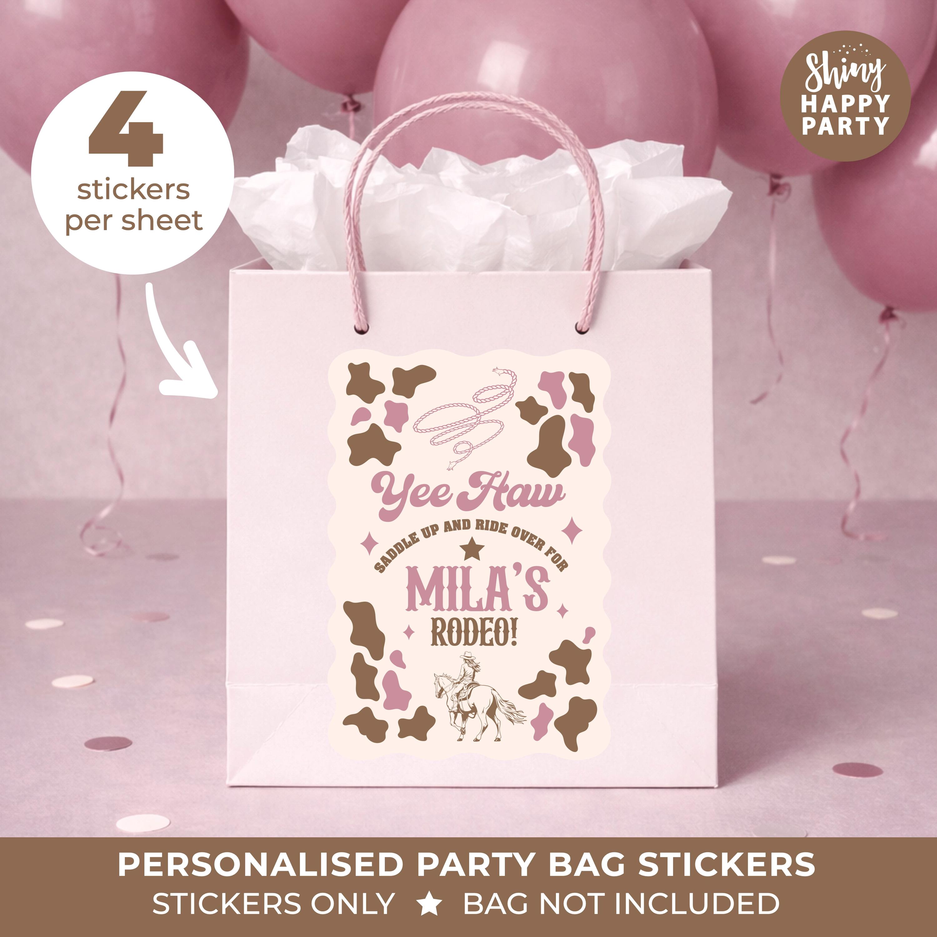 Personalised Cowgirl Birthday Party Stickers - Pink Rodeo Western Labels