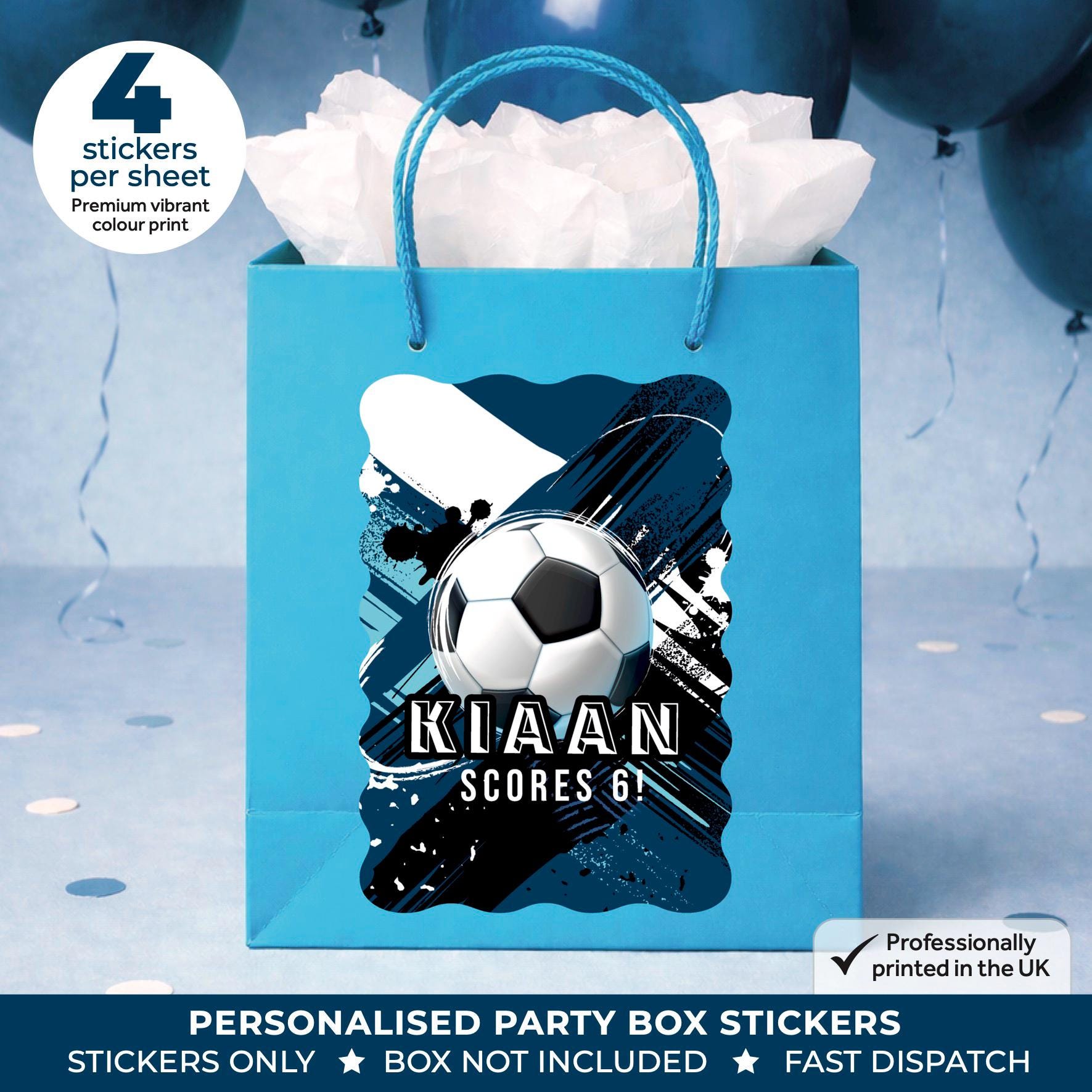 • Stickers are designed to fit most standard party boxes and bags