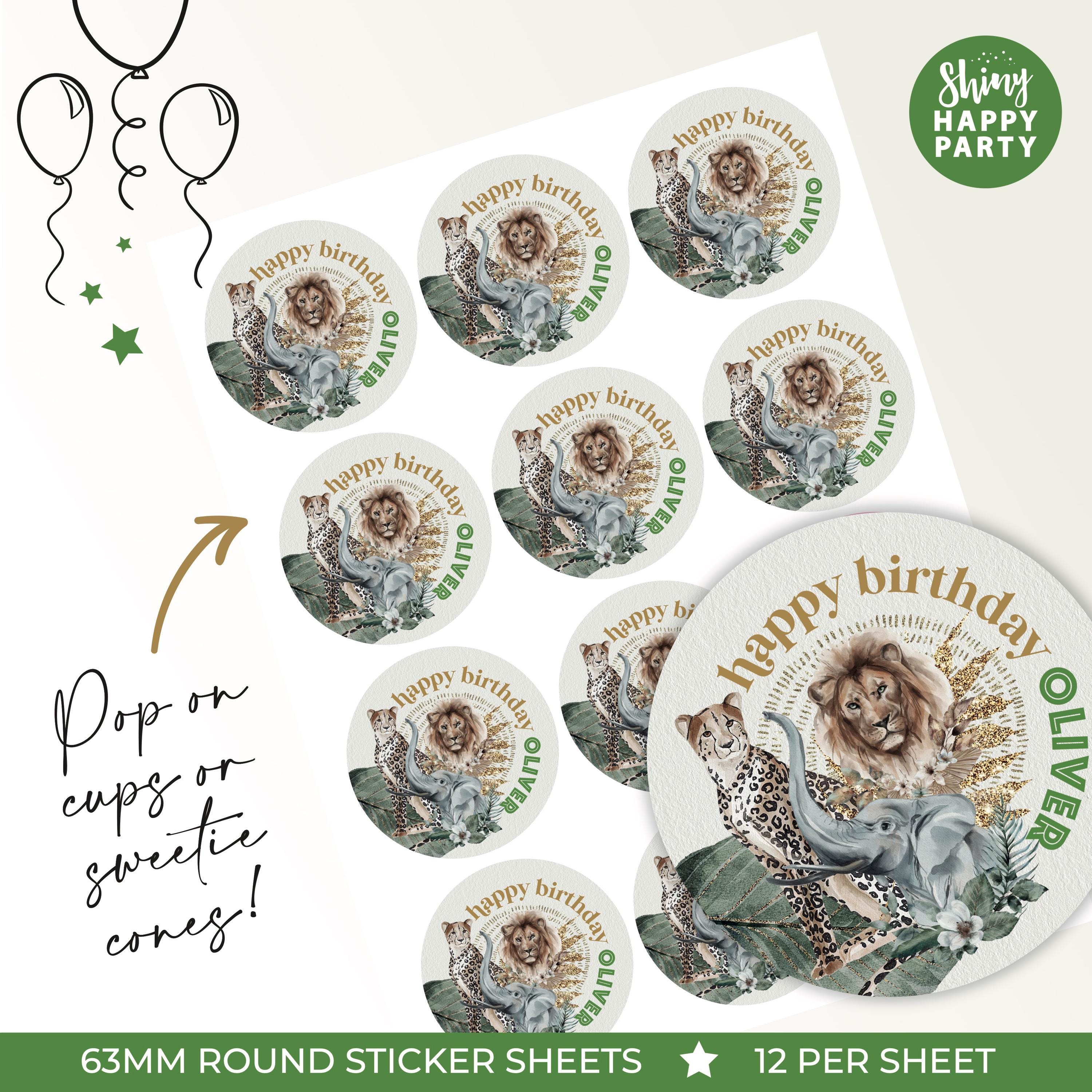 This listing includes three coordinating sticker options, designed to mix and match for a cohesive party look.