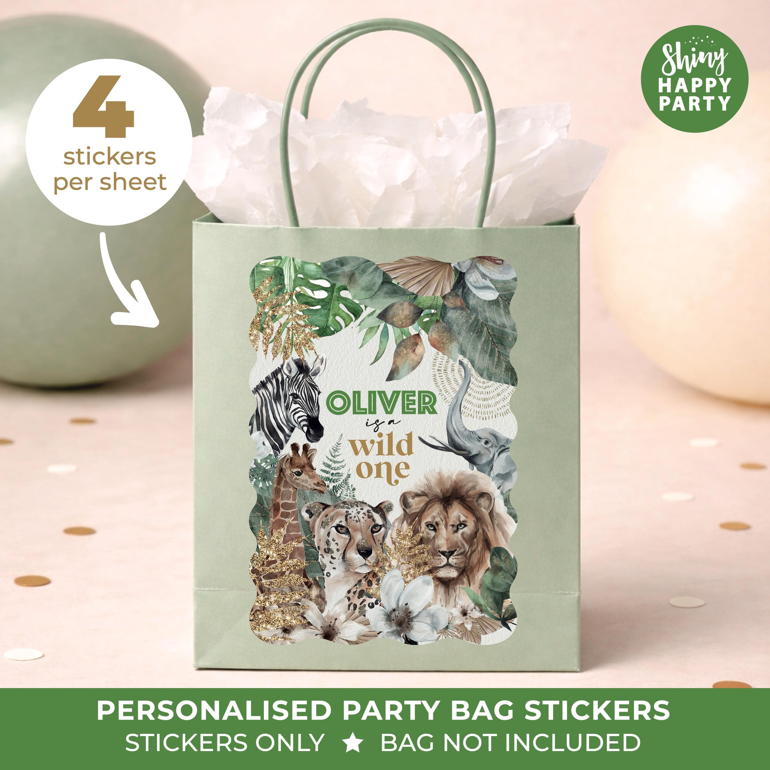 Personalised Green SAFARI Birthday Party Stickers - Wild One Jungle Labels