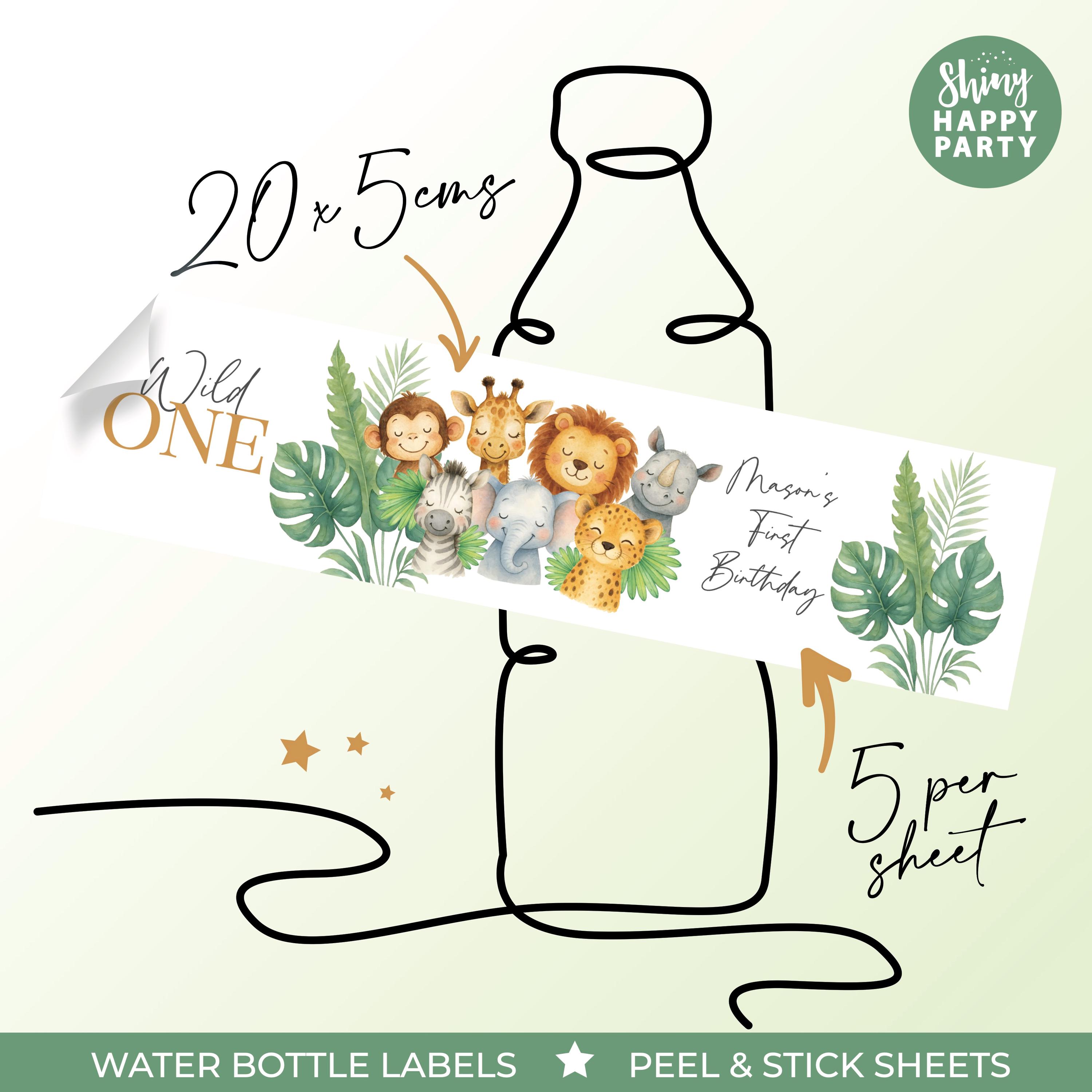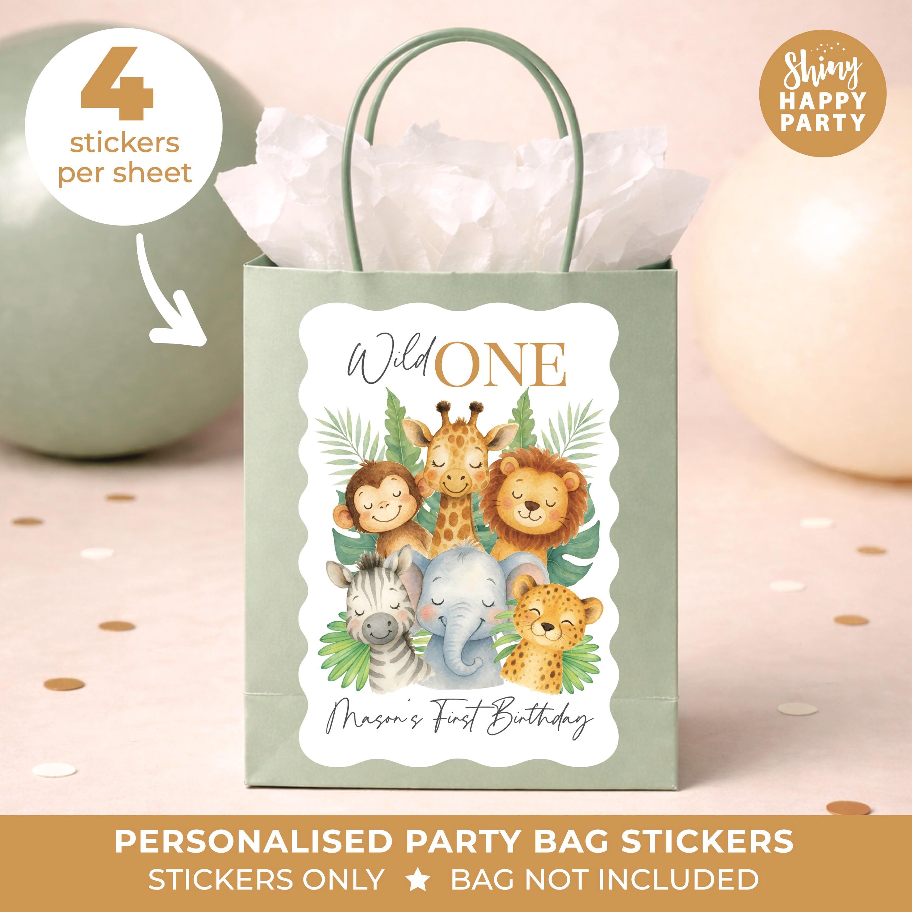Personalised Wild one JUNGLE Birthday Party Stickers - Safari Labels