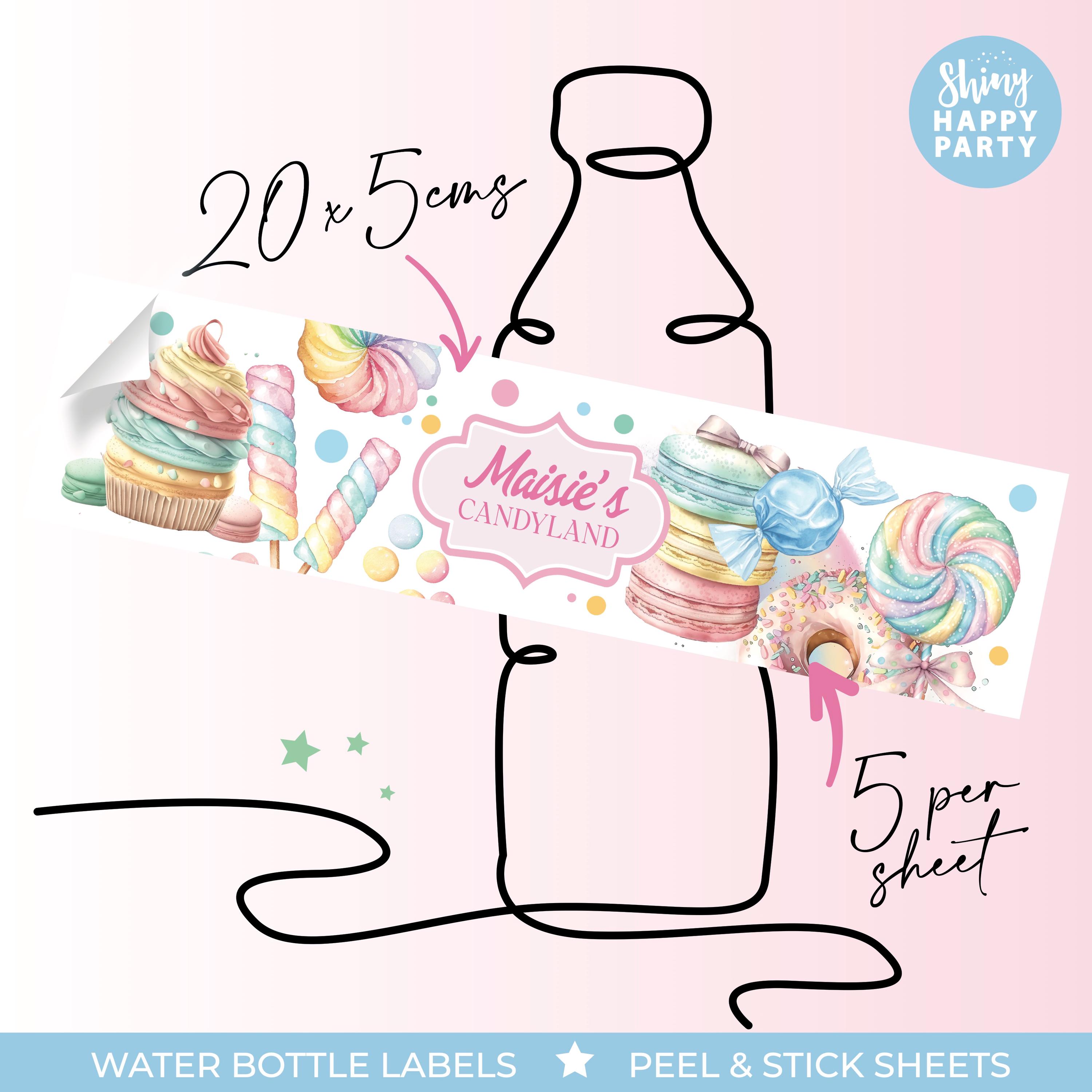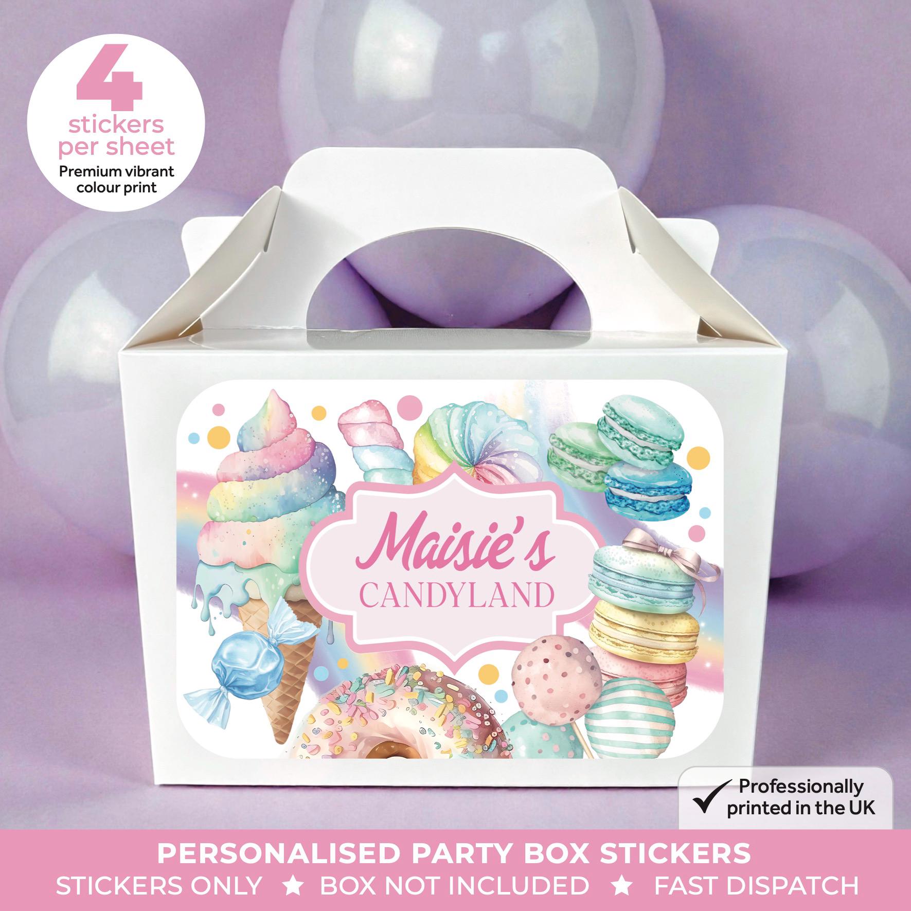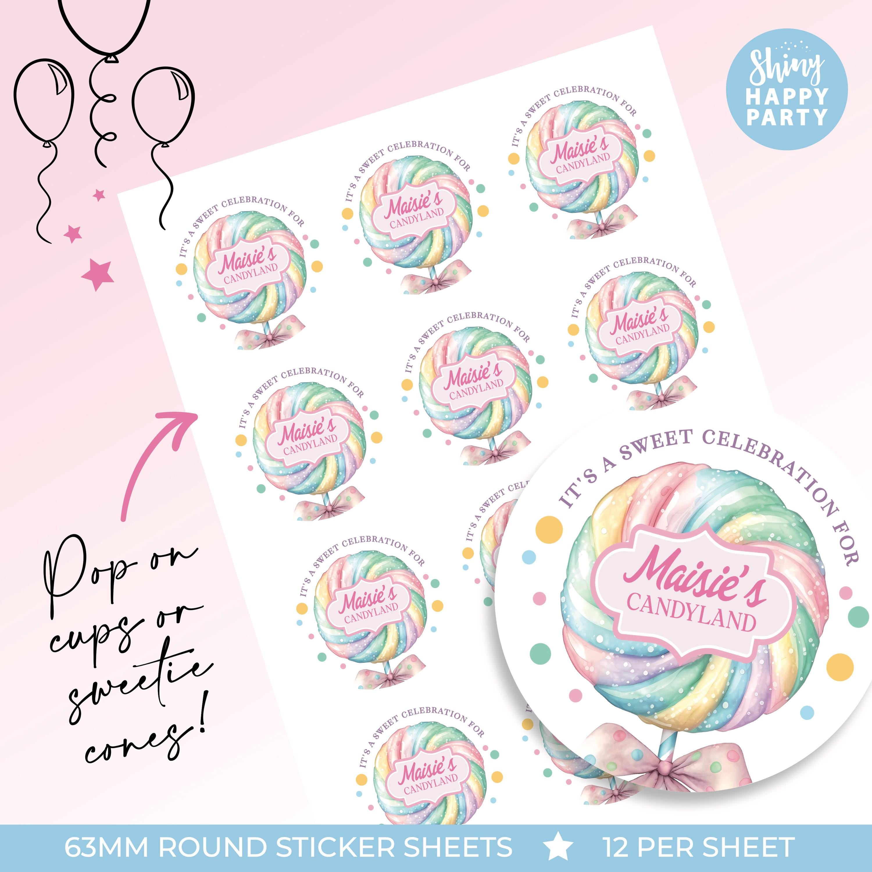 Personalised Candyland Watercolour Birthday Party Stickers - Sweet Labels