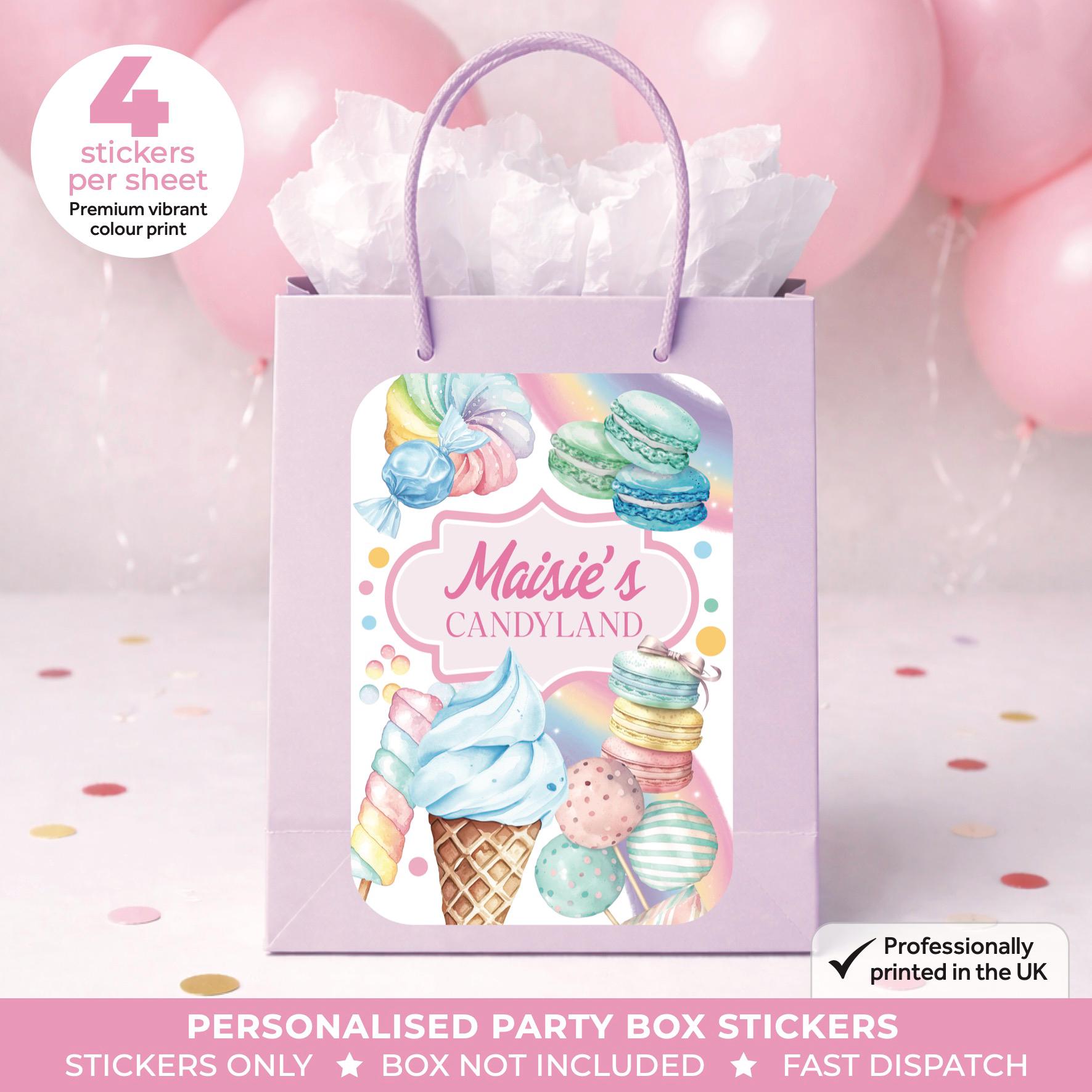 Create your own party boxes or party bags using our personalised party stickers.