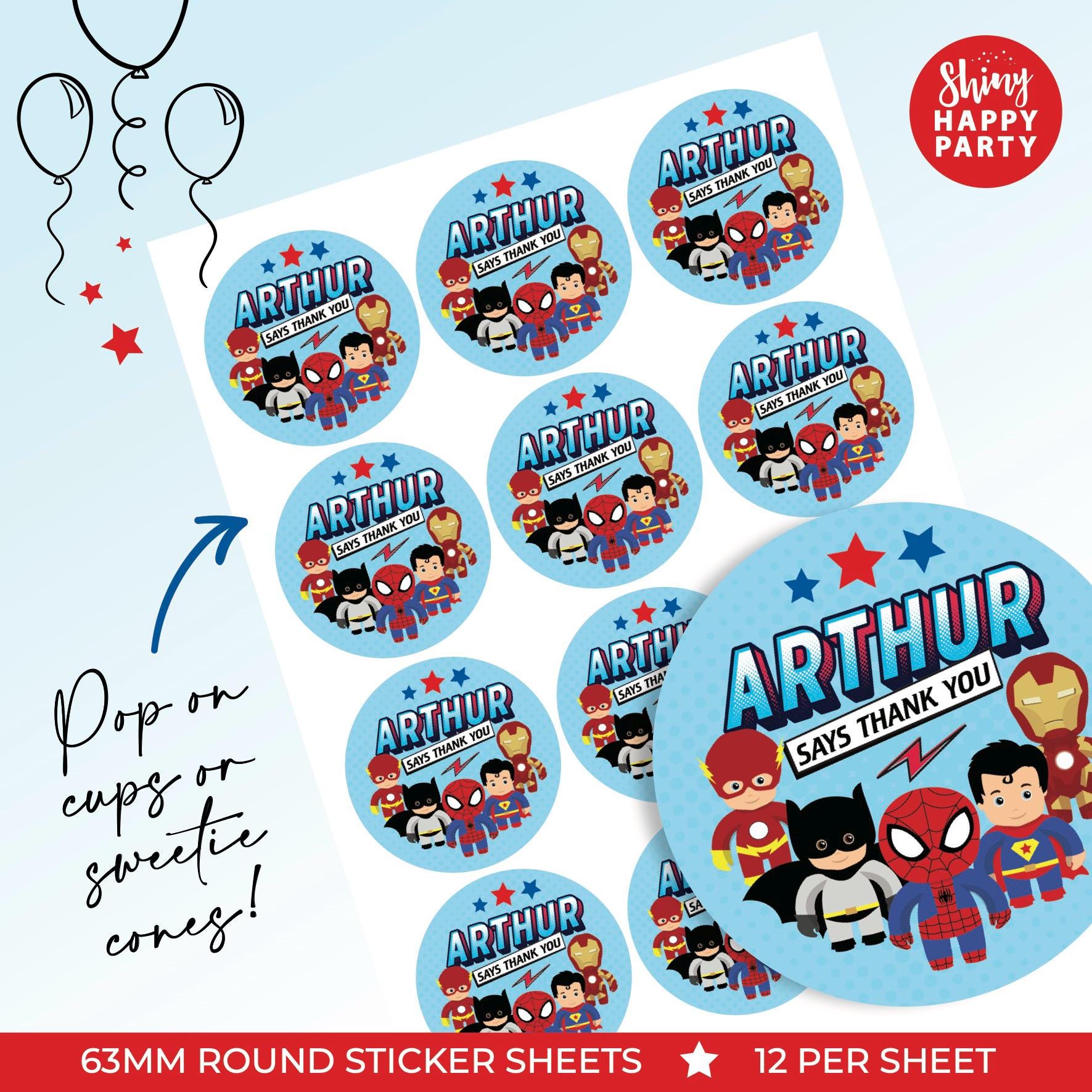 Personalised Superhero Birthday Party Stickers - Comic Hero Labels