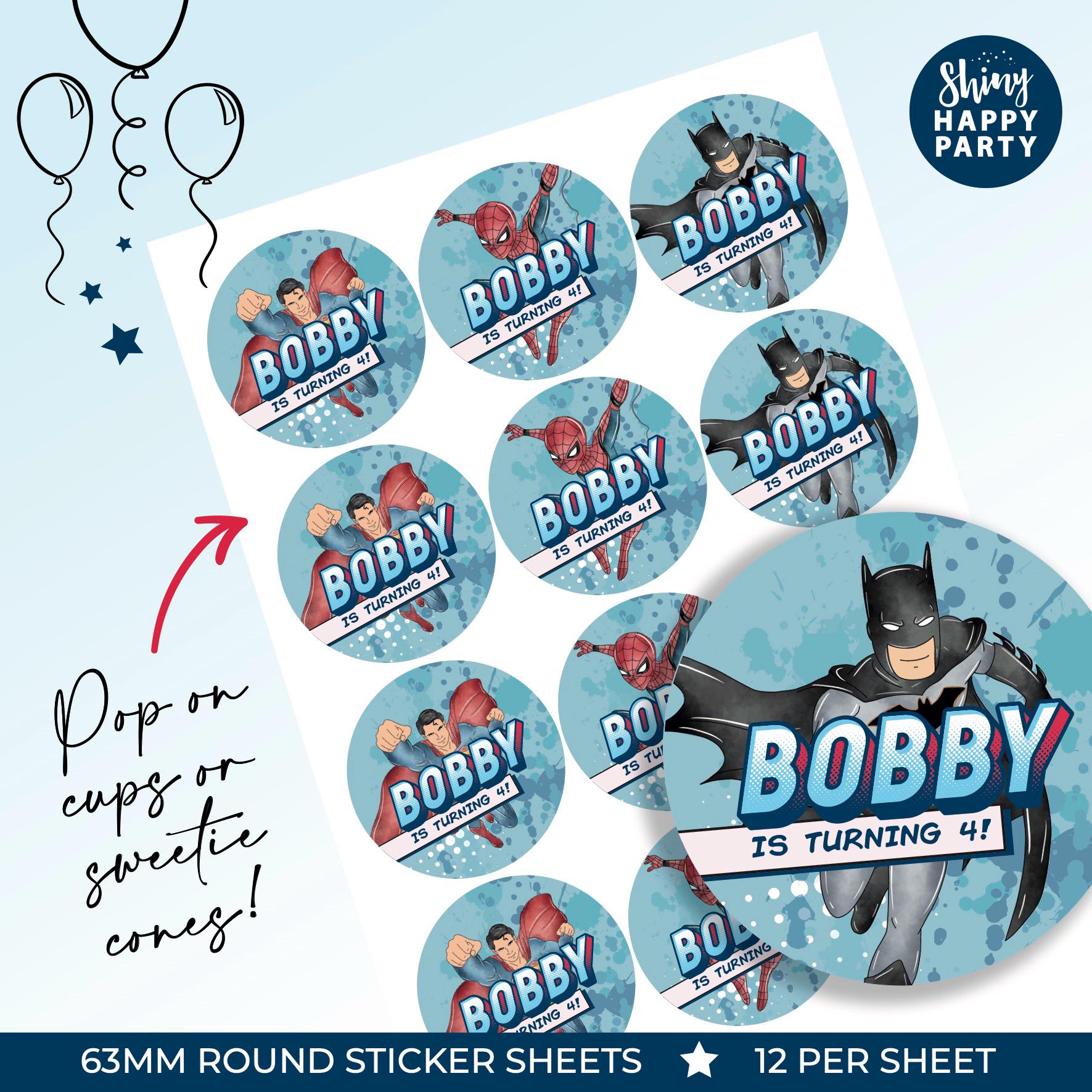 This listing includes three coordinating sticker options, designed to mix and match for a cohesive party look.