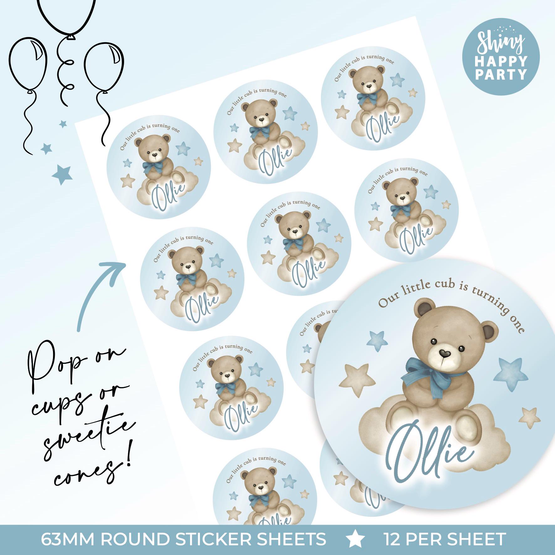 This listing includes three coordinating sticker options, designed to mix and match for a cohesive party look.