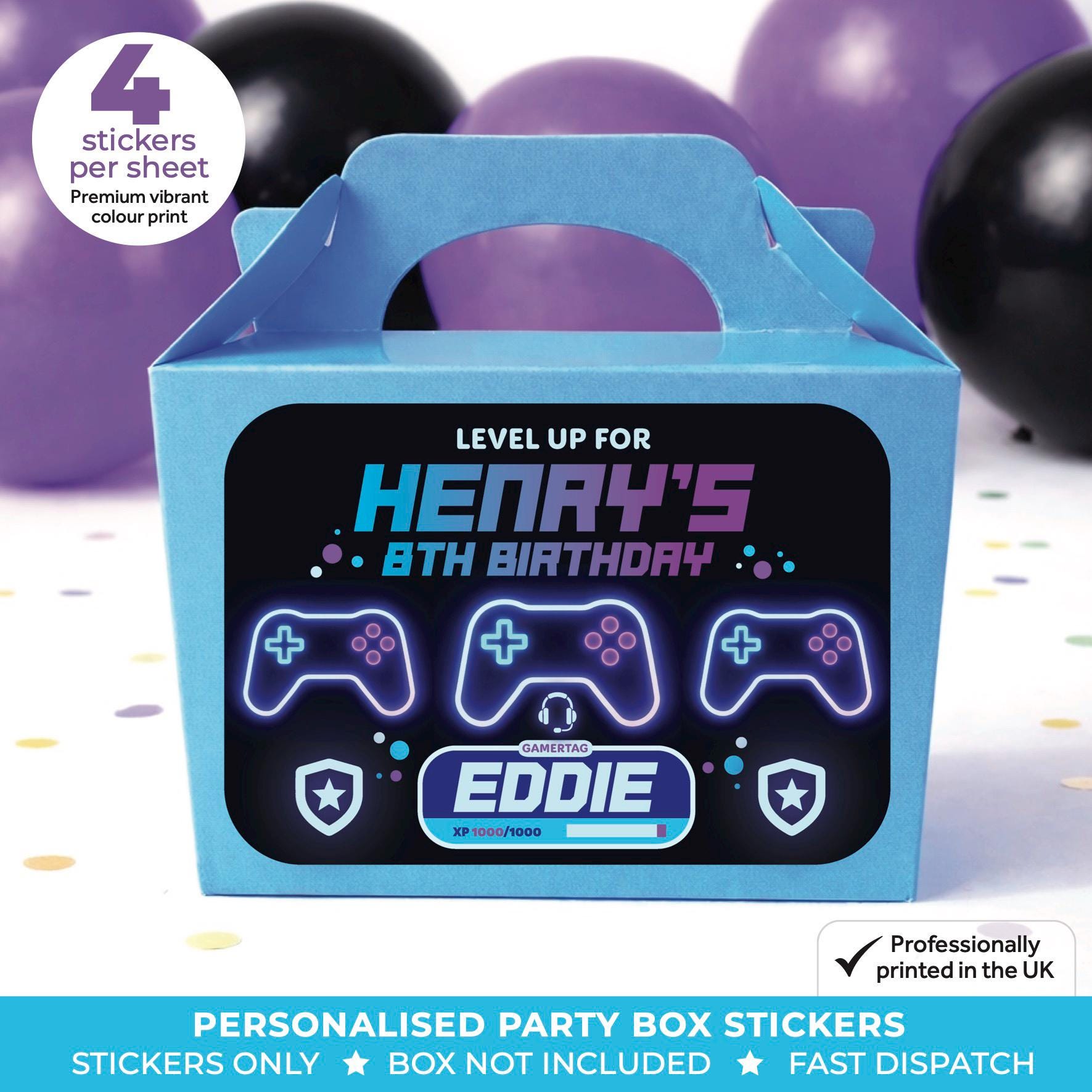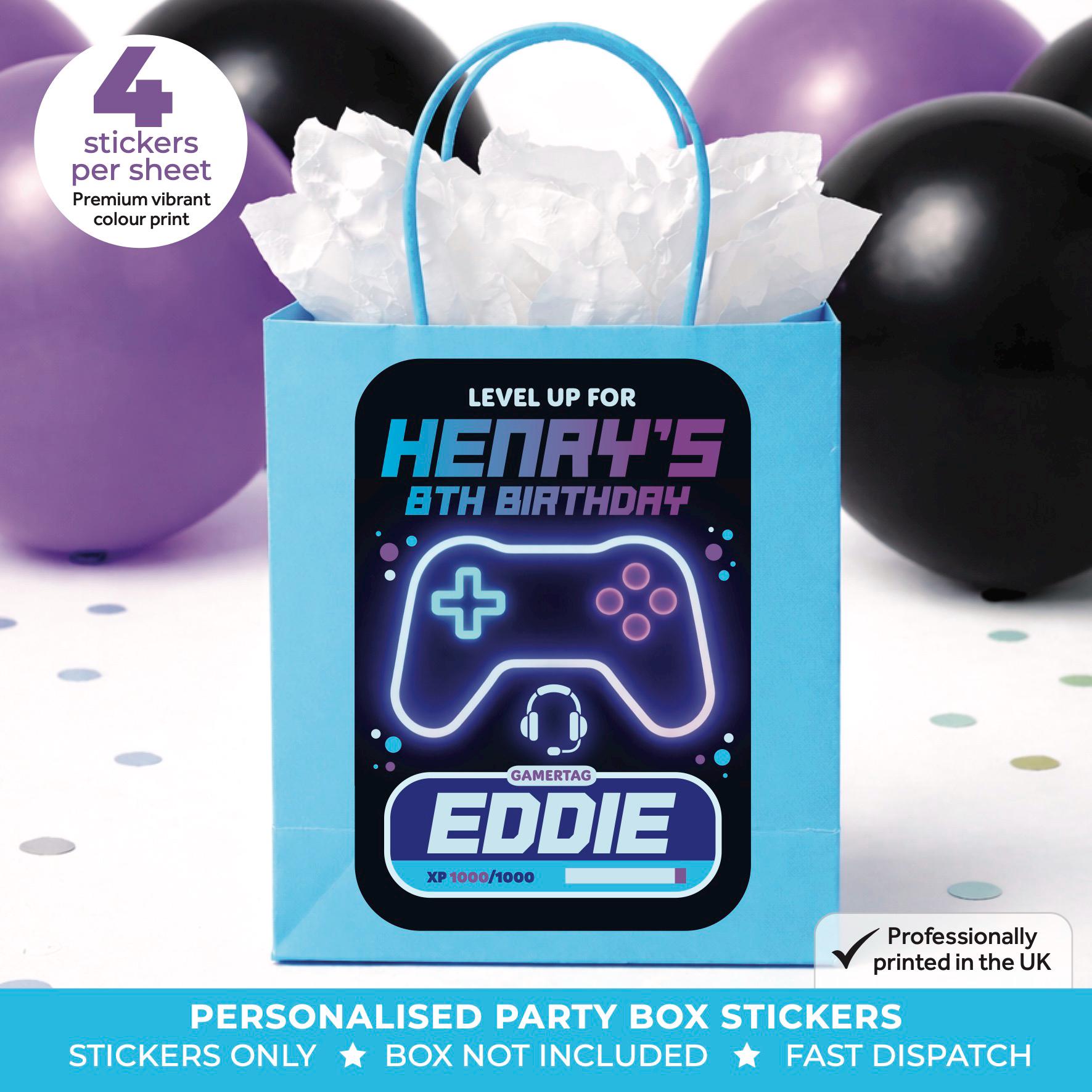 • Stickers are designed to fit most standard party boxes and bags