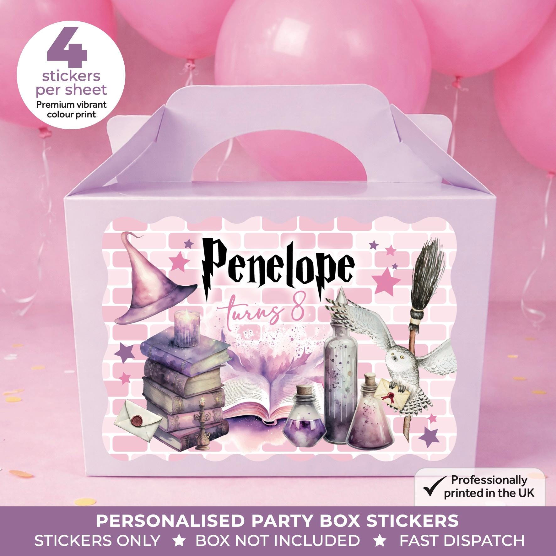 • Stickers are designed to fit most standard party boxes and bags
