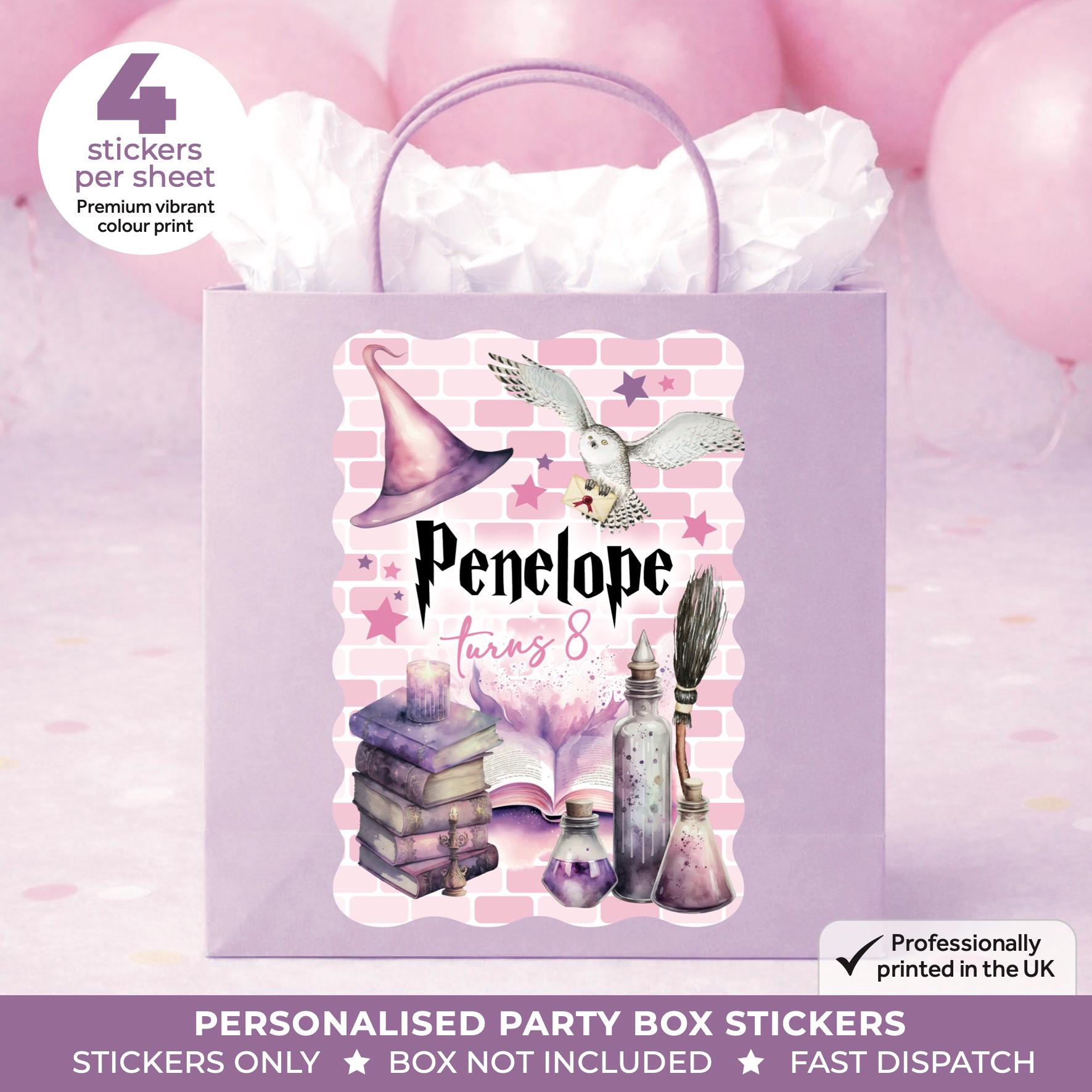 Personalised Wizard Magical Wizard Birthday Party Stickers - Pink Magic Girls Theme Labels